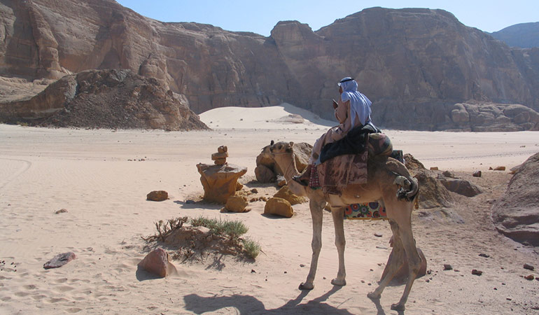 The Camel Pass is a two day camel safari taking you into the open plateau of Barqa, int eh heart of the Sinai Desert. Visit an array of historical and geological wonders, whilst learning about the history, culture and daily lives of the desert dwelling Bedouin people, who still live in these remote regions. Camel Trekking is the ultimate way to discover all that is the desert, the rhythm of the camel stride, the tranquility and peacefulness not to mention to the stunning landscape can only really be appreciated when travelling by camel. The Camel Pass visits the ancient bronze age tombs of Nawamis with a stop off to drink tea with the Bedouin families, the highest sand dunes in Sinai and also to the top of mt Matamir for spectacular panoramic views of the valleys below. Whether you are a seasoned traveler or a green horn in the desert this tour will transport you into another world filled with tradition and heritage, you’ll swap stories around the campfire and sleep under the starry desert sky in traditional Bedouin fashion. This trip starts in Dahab or Sharm el Sheikh, with an earlier pick up time for guests in Sharm.